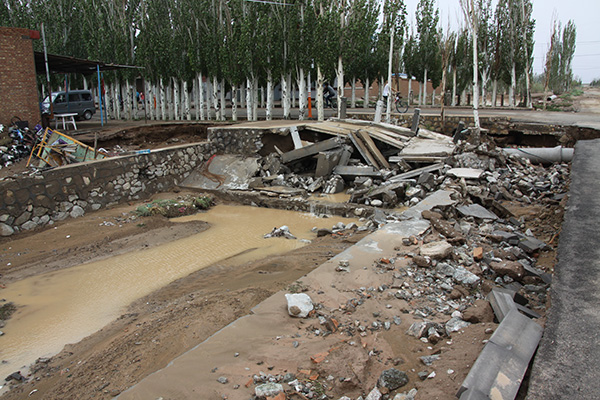 盐湖采区遭受污染 供销分公司库房房顶毁坏 精盐分厂粉盐品遭受雨水浸泡 镇区马路被破坏 居民院落外墙被泡塌 泄洪口被冲毁 集团公司盐湖受损最严重。山洪自西向东灌入正在生产的盐湖采区,不仅结晶池遭到污染,挖掘机归拢的盐品也全部溶化。已经生产出的半成品盐坨遭受暴雨清洗,仅雨水溶化的盐品近2千吨。精盐分厂刚刚生产的粉洗盐,虽及时苫盖,也没有躲过雨水浸泡,600吨成品报废。据统计,盐湖直接经济损失达500多万元。 因暴雨侵袭,采盐分厂部分院墙倒塌,供销分公司3间供应库房房顶毁坏,机运分厂和公司办公楼大面积漏水,供热分公司2000米暖气管沟遭到雨水漫灌,30处检查井损毁,几乎每个单位都受到重创。 由于公司部分职工居住的平房还是土木结构,山洪来袭,泄洪口排水不及,致使3家居民院墙被冲塌,1家居民小房子外墙被泡塌,另有3栋楼房地下室被山洪漫灌。100多户居民房屋漏水严重。危急时刻,政府相关部门及时组织疏散受灾群众,避免了人员伤亡。 山洪来势凶猛,小镇唯一的防洪渠跨马路部分被冲毁,镇区马路多处遭到破坏。